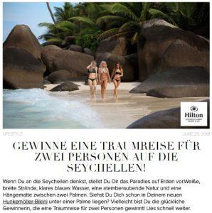 A truly idyllic cooperation between the underwear & swimwear brand Hunkemöller and the Hilton Seychelles Labriz Resort & Spa. The Hilton Resort offers long white beaches, clear blue water and an inviting hammock between two palm trees. All this created the dream setting for the Hunkemöller Ambassador photo shoot for their new collection. Hunkemöller subsequently held a prize draw to win a trip to this exquisite paradise. The whole campaign was able to achieve impressive international outreach.